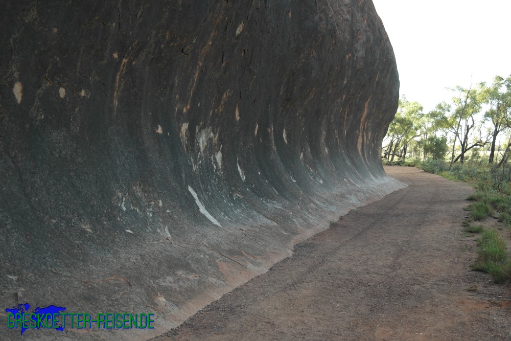 Der Weg um den Uluru ist aber weniger spektakulär wie der Weg an den Kata Tjuta. Und an fast allen interessanten Stellen ist fotografieren verboten. Der Grund für das Fotoverbot ist dabei so geheim, dass es nur der Erstgeborene erfährt und auch nur seinem Erstgeborenen weiter erzählen darf. Wir werden also wohl dumm sterben, wenn sich nicht irgendein Erstgeborener verplappert.