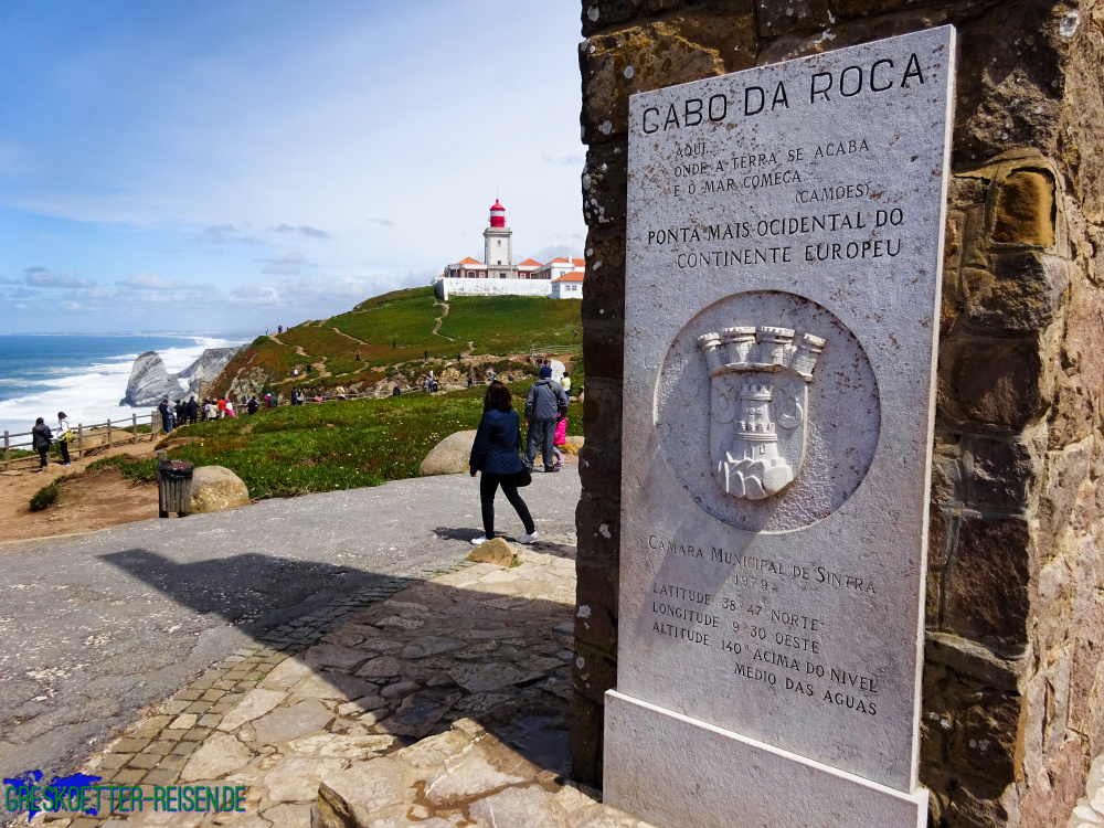 Gegen 13 Uhr verließen wir Quinta da Regaleira und Sintra dann und fuhren weiter durch den schönen Nationalpark nach Westen. Irgendwann verließen wir dann den dichten Wald des Nationalparks und in der Ferne war das Blau des Atlantiks zu sehen. Und genau da wollten wir hin, ganz genau zum westlichen Punkt des europäischen Festlandes, dem Cabo da Roca.