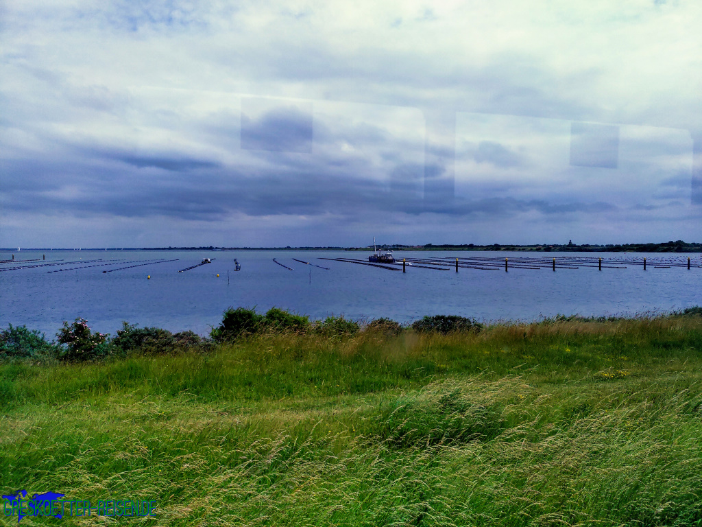 Als wir den Brouwersdam erreichten, hatte das Rattern des Zuges Tom aber schon in Schlaf versetzt. Mit Blick auf das Grevelingenmeer setzte der Zug seine Fahrt fort und wir fuhren am CenterParcs, der sich auf einer alten Arbeitsinsel befindet, vorbei bis zum Ende des Damms. Hier hielt der Zug einige Minuten, bevor es wieder zurück ging.