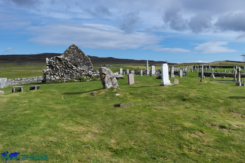 Also schauten wir uns die Ruine der alten Kirche an. Hinter der Kirche befindet sich ein kleiner Friedhof, der seit Jahrhunderten dem Wetter trotzt. Grüne Flechten hatten sich mittlerweile über die Begrenzungsmauer und einige Grabsteine gelegt. Hier lag gefühlt das Ende der Welt. Zwar kein absolutes Must-See, aber ein kleiner Abstecher lohnt sich.